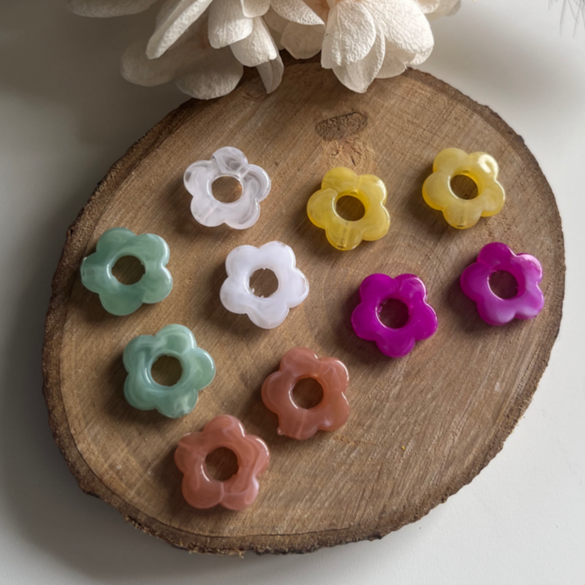 Créoles effet martelé avec perles fleurs , interchangeables.